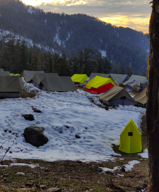Our first day would start with a drive of 137 km from Dehradun to town of Barkot located on the banks of Yamuna River. This drive is enriched with beautiful lush green views of the mountains and the Yamuna River surrounded by alpine forests. A drive through this route is going to gives a great start to the journey while building up the excitement for what is next to come. After a drive of 4-5 hours, we reach the town of Barkot and will have our first stop at Camp Veda. A luxury camp located near the banks of river Yamuna surrounded by lush green forests. This will be an ideal place to just unwind, relax and prepare for the trek. The stay also ensures that everyone gets acclimatized to the weather.